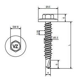 Hoog-laag draad verzinkt CR+3, met EPDM afdichtingring. Met kleurcoating.