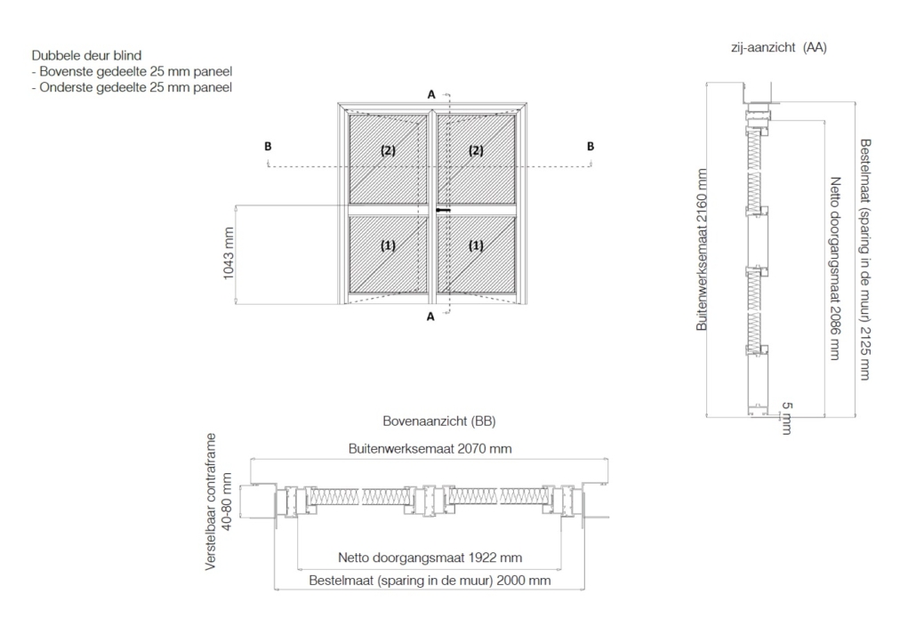 • Dubbele deur 2000 x 2125 mm, volledig dicht