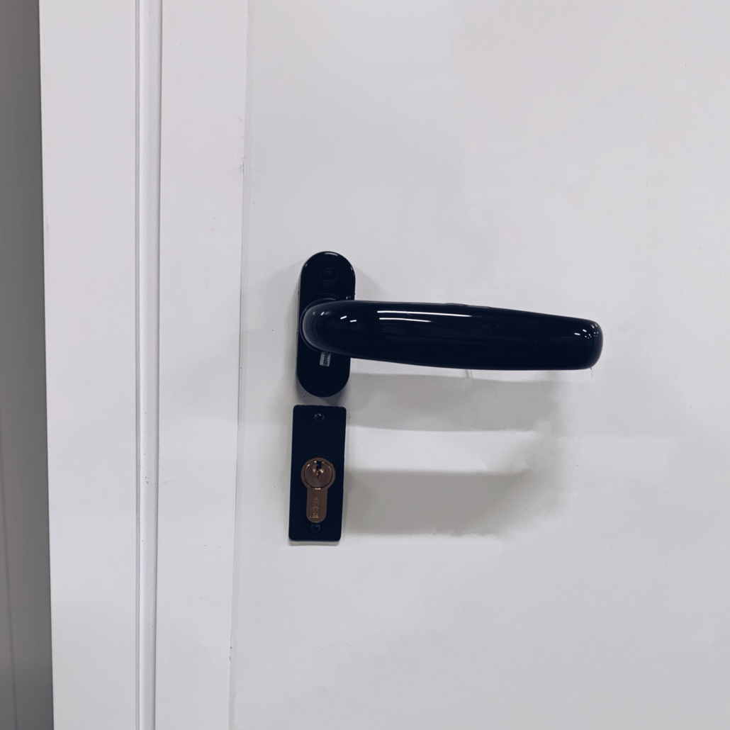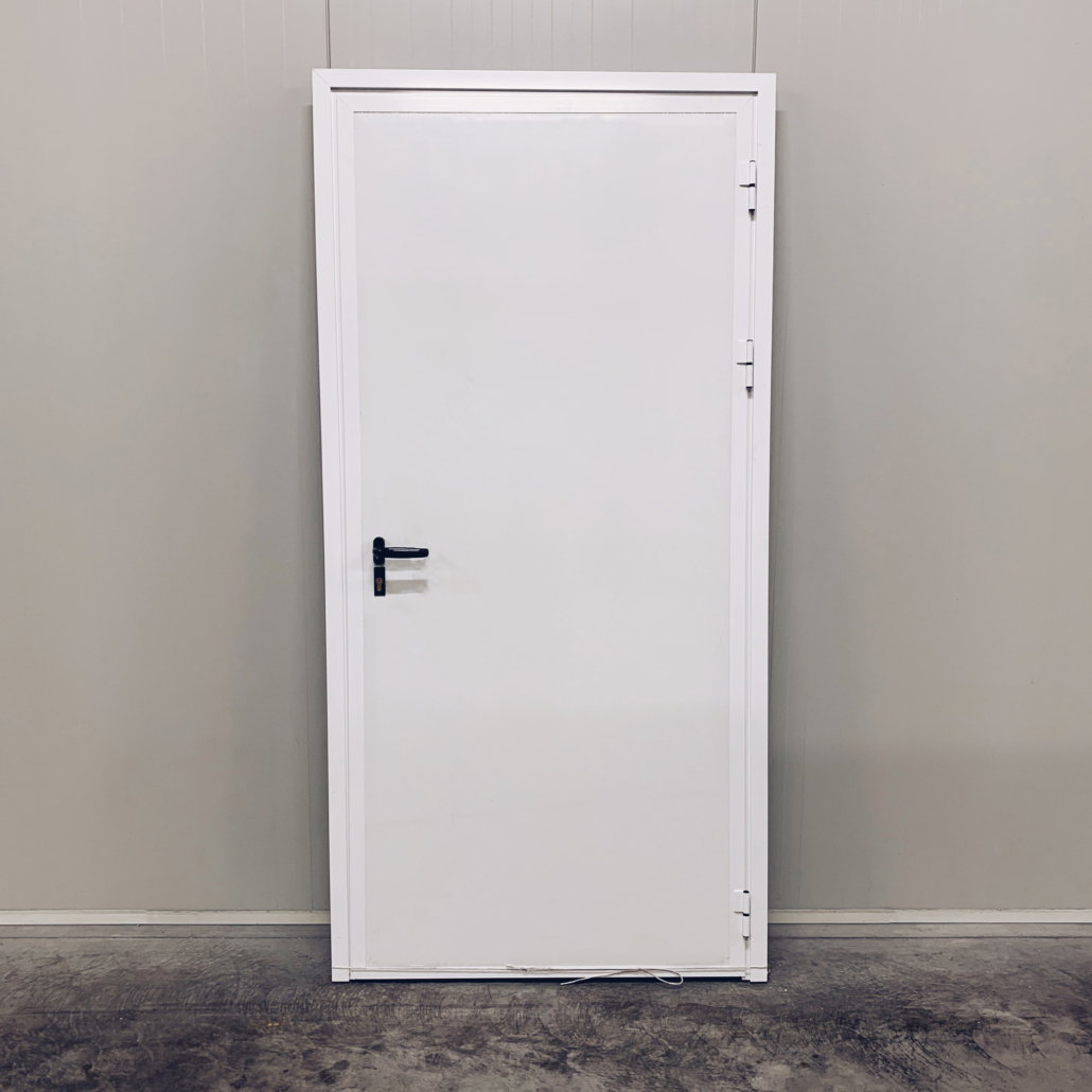De enkele deur wordt standaard uitgevoerd in de maat B 1000 x H 2125 mm, met een deurbladdikte van 45 mm. Deze zijn incl. slotkast en kunststof klinkstel in de kleur zwart.