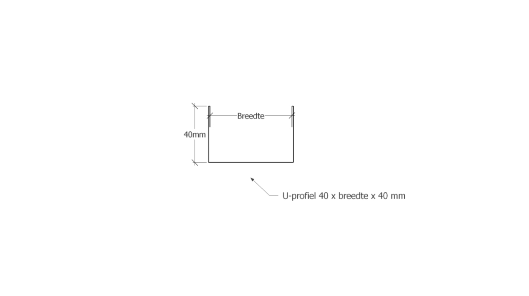U-profiel 40 x 41 x 40 mm, incl. fels randen.