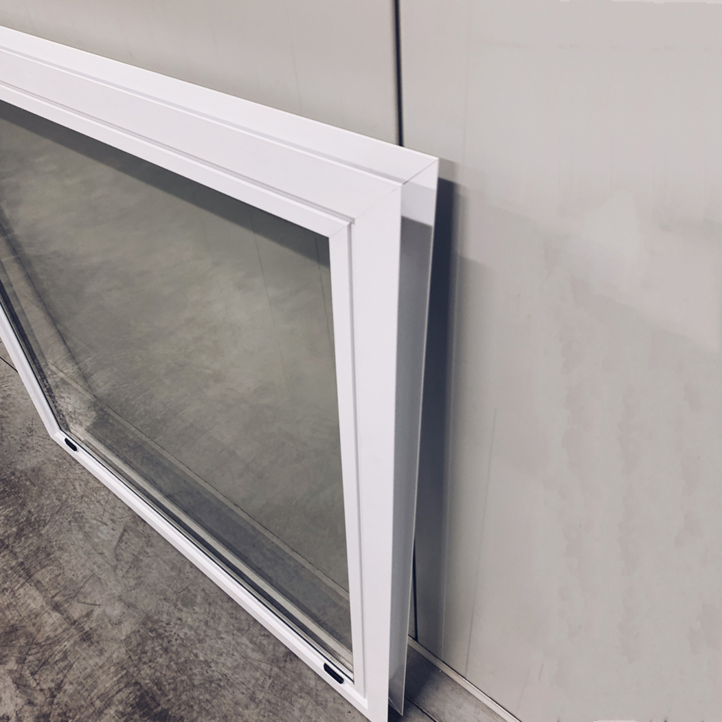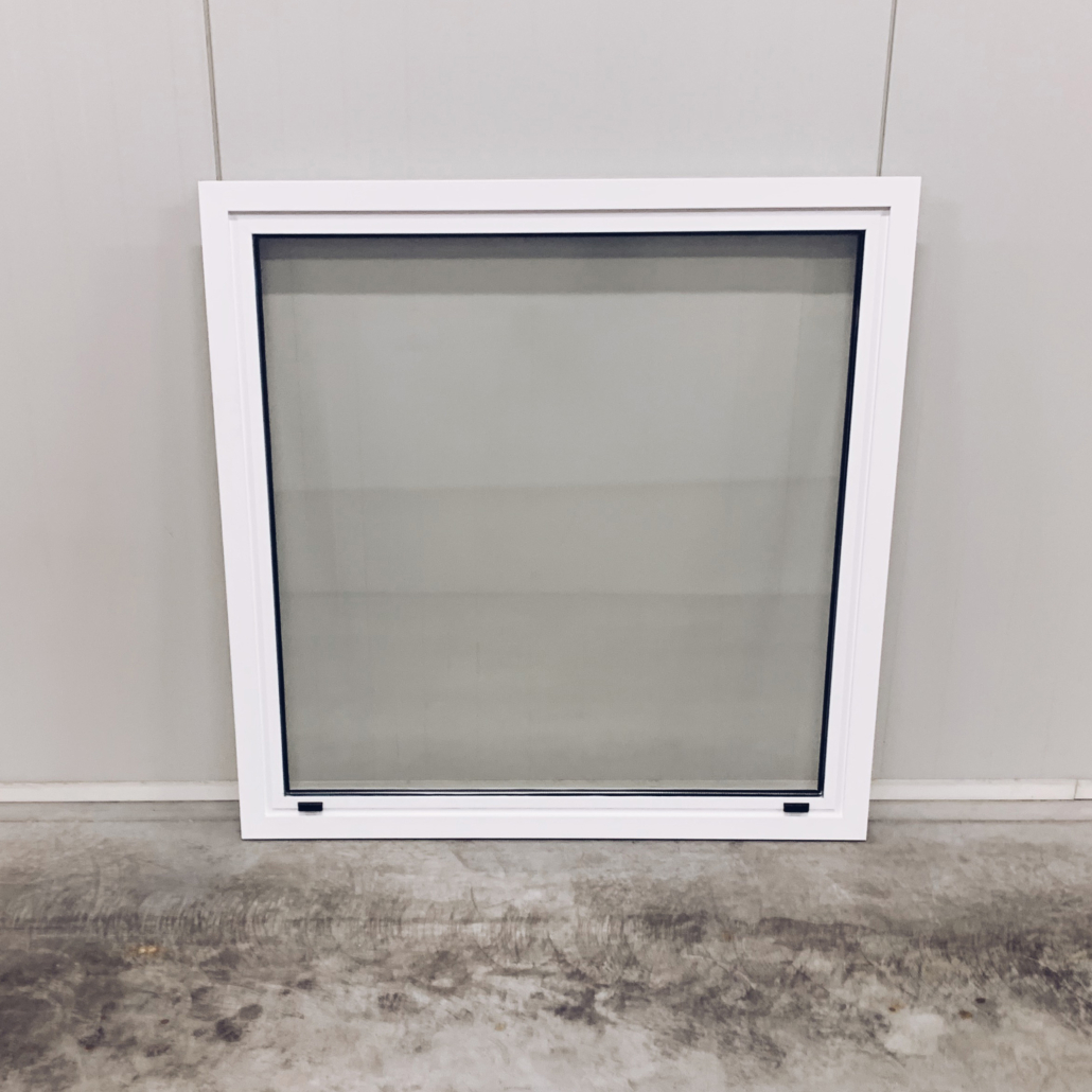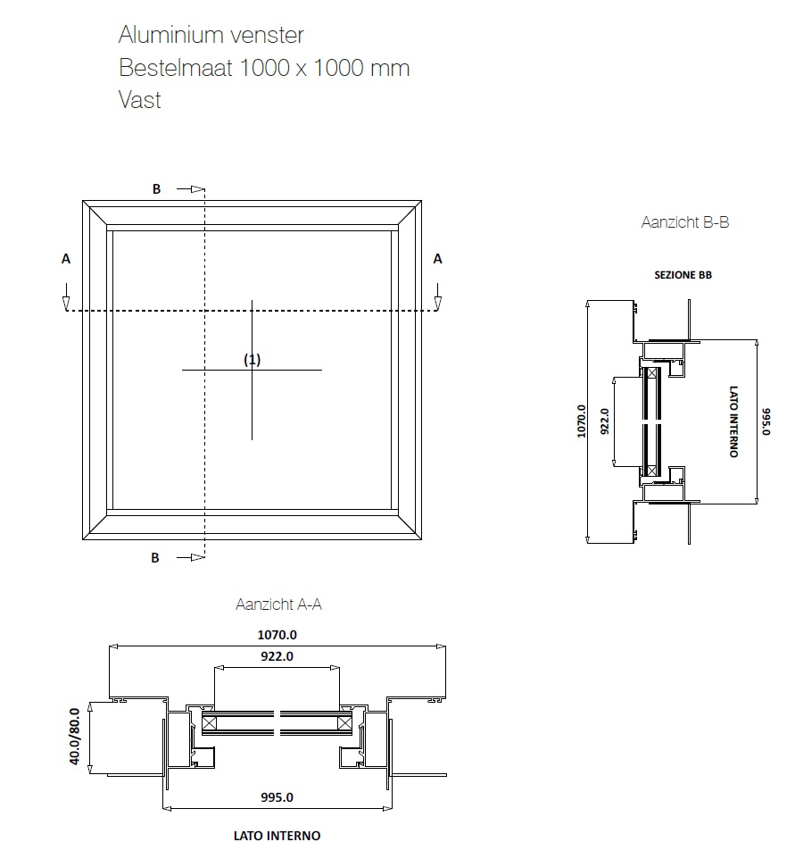 Het vast raam wordt uitgevoerd in de maat 1000 x 1000 mm, is voorzien van dubbel glas.